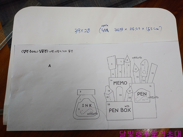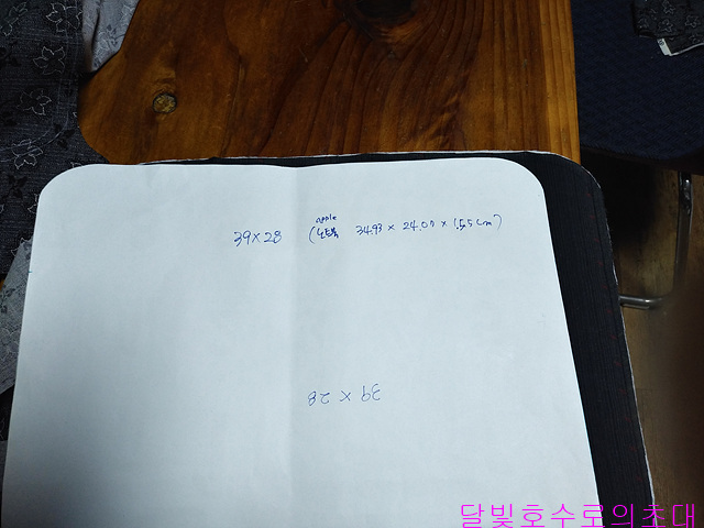 하지만 작은 딸은 맥북을 사용하기에 우선 크기를 재고 재단을 시작했다