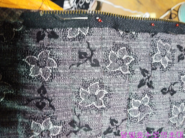 이제 바이어스 대고 지퍼 달고 이어주는 것이 남았네요